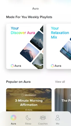With inclusive Tabs for Me Tab, Coach Tab and Sleep Tab. Aura App comes with a free trial and also a premium(a monthly subscription of $7.99 (USD), weekly subscription for $1.99, and a year subscription for $59.99 (USD) which turns out to be  $4.99 per month) to unlock all features.