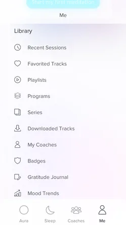 You may view all of your recent and previous meditations here under the Me Tab, including: